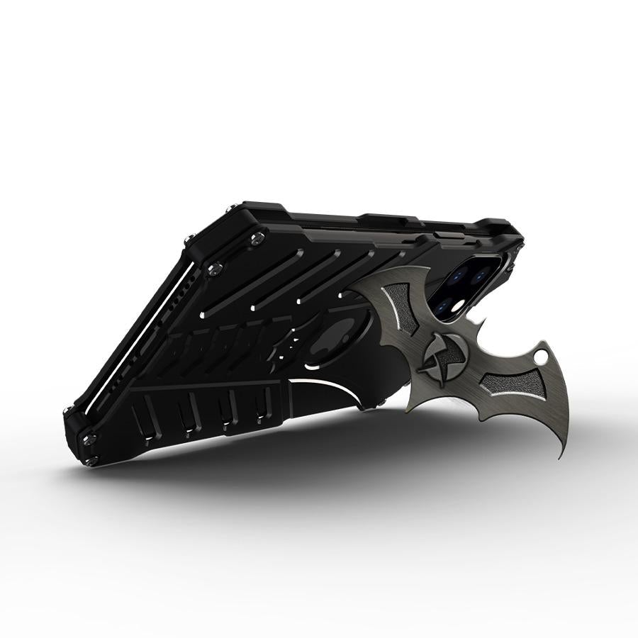 • Metal Batarang (can be used as a kickstand or attached to a key chain).