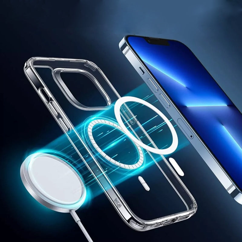 Presenting the MagSafe clear case for iPhone, which allows you to conveniently charge your device without having to remove the case every time. The case is transparent, which allows you to flaunt the beautiful color of the phone.