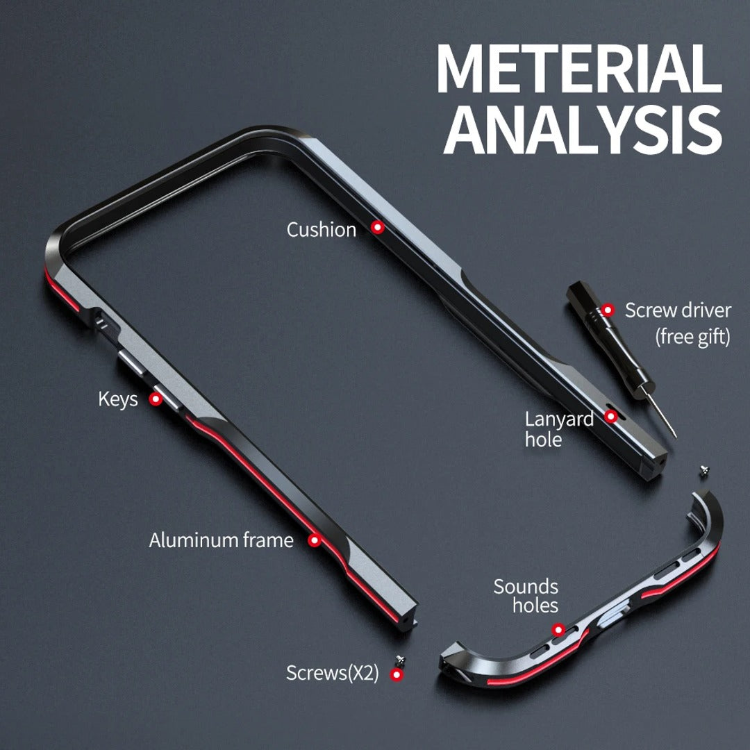 This Frame Shield Metal Bumper Case is designed to protect your device, featuring a sturdy metal frame with a shock-absorbent bumper edge. Superior protection and a stylish design make this the perfect way to safeguard your phone.